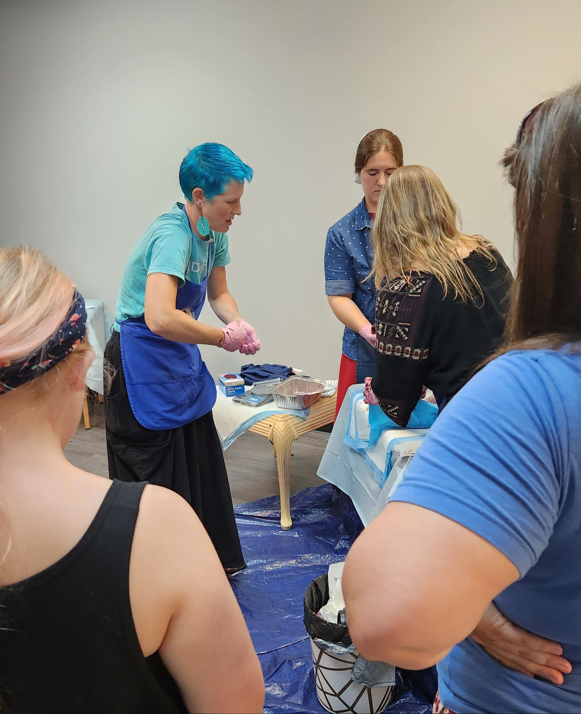 - Participants practice individual skills and then are encouraged to get ‘birthing’ using strap on models to play out a variety of birth emergencies. This provides a vital step to not only practice the skills but integrate them with a real person. This provides opportunity to practice communication (with birthing person, your team, other’s present, and emergency services) while managing the energy of the room.